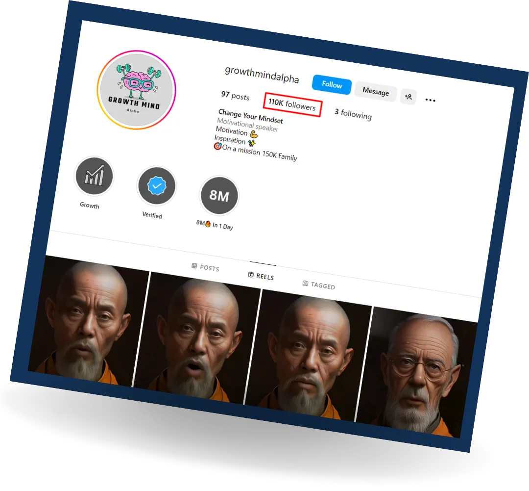 هذا الحساب الذي يضم أكثر من 110 ألف متابع والتي تم بناؤه في 4 أشهر فقط ... أساس محتوى الحساب بالكامل مبني على الذكاء الاصطناعي، يعني لا نبني المحتوى بنفسنا